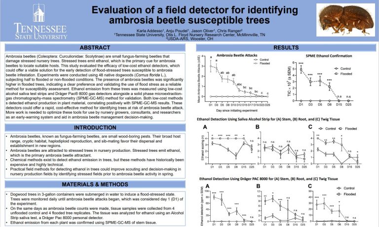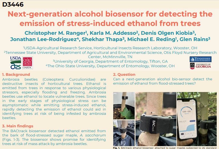 Ambrosia beetles (ABs) are destructive wood-boring insects that cause significant damage to specialty tree crops, particularly in apple and pecan orchards and ornamental nurseries. With funding from the USDA’s Specialty Crop Research Initiative, our team of researchers is uncovering the pest’s secrets to find management solutions that will protect our food, our environment, and our farms.